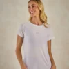 A Blusa Ruthe é leve, respirável e com toque macio, projetada para acompanhar o corpo com conforto. Seu tecido de secagem rápida e que favorece a circulação de ar ajuda a manter a sensação de frescor durante o treino ou atividades diárias. A modelagem levemente acinturada oferece caimento bonito sem excesso de compressão, enquanto a elasticidade natural do tecido permite total liberdade de movimento. Uma peça curinga que transita facilmente entre o esportivo e o casual.