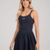 Alças com acabamento em elástico e busto forrado. Logomarca bordada. Saia em pregas dando todo o charme! Possui short de forro com dois bolsos: um com abertura para cima, para celular e acessórios; outro com abertura para baixo, para bolas.